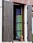 2010Huisdieren blijven me verbazen. De vanzelfsprekendheid waarmee ze met ons samenleven, vind ik wonderlijk mooi. Hoe ze zich opwerpen als huisbewaarder, strategisch opgesteld in vensterbank of deuropening. Ik fotografeer ze overal waar ik kom. Hier in Lezinnes, Frankrijk.