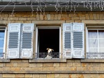 2015Huisdieren blijven me verbazen. De vanzelfsprekendheid waarmee ze met ons samenleven, vind ik wonderlijk mooi. Hoe ze zich opwerpen als huisbewaarder, strategisch opgesteld in vensterbank of deuropening. Ik fotografeer ze overal waar ik kom. Hier in Meisenheim, Duitsland.